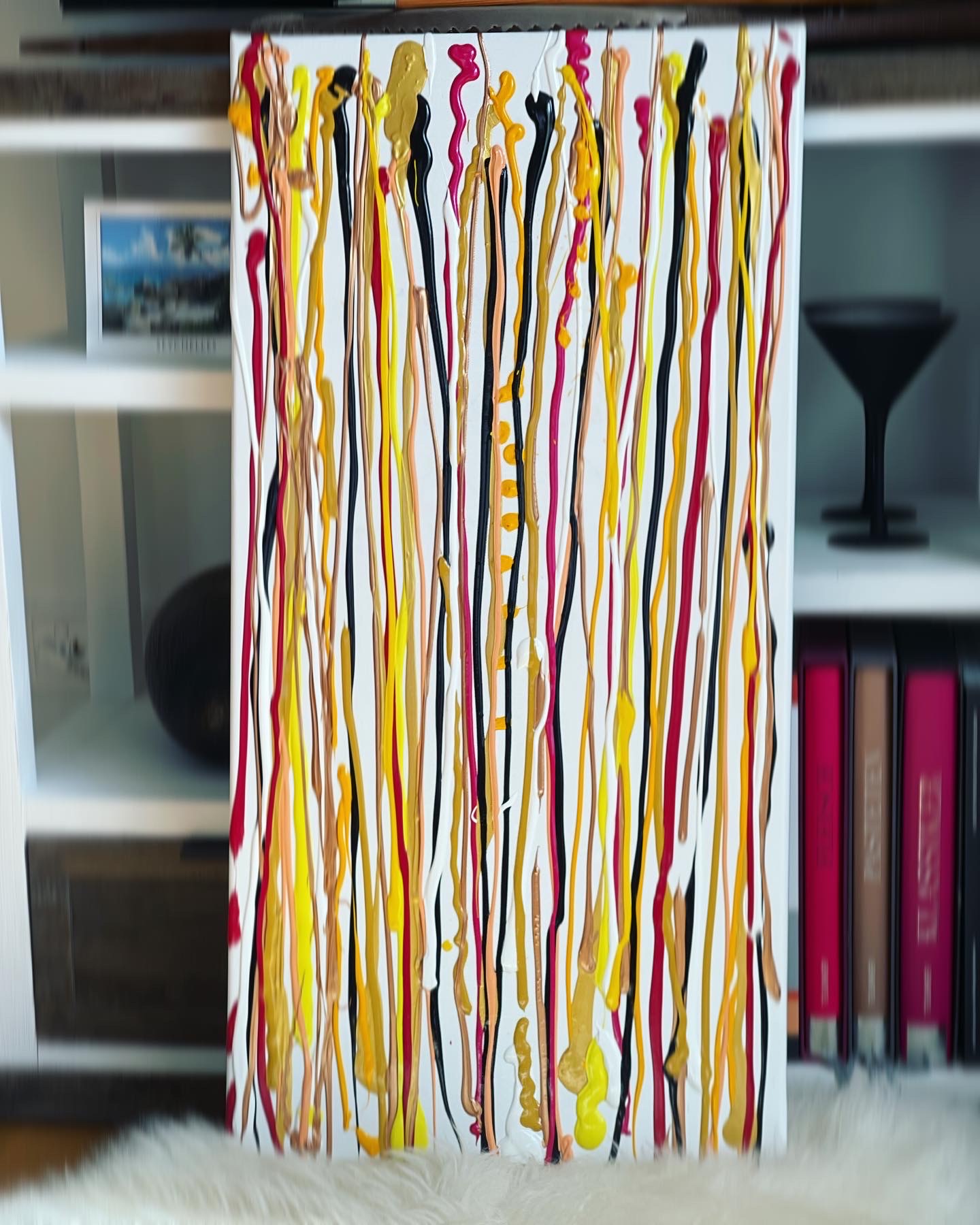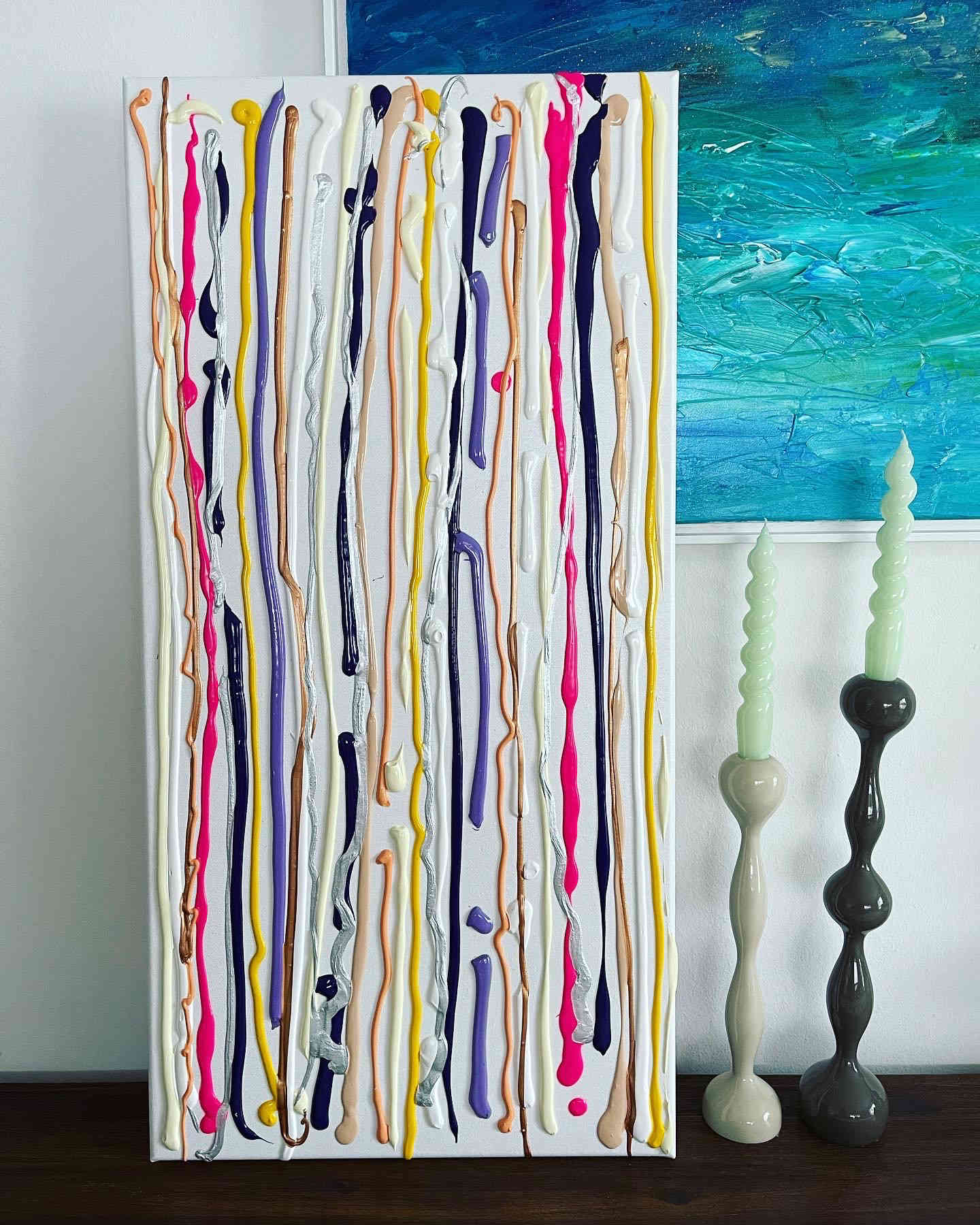 ✧Product features are for example highest lightfastness, silk-gloss surface, non-yellowing, UV stable, high coverage and durability and the colors have an excellent adhesion to the painting surface, like canvas. In my Lakaz art studio I use mainly basic colors as a starting point for my color mixtures, but also fluorescent and metallic colors in different color viscosities. The dried layers of paint are permanent, flexible and insensitive to water. Et voilà!